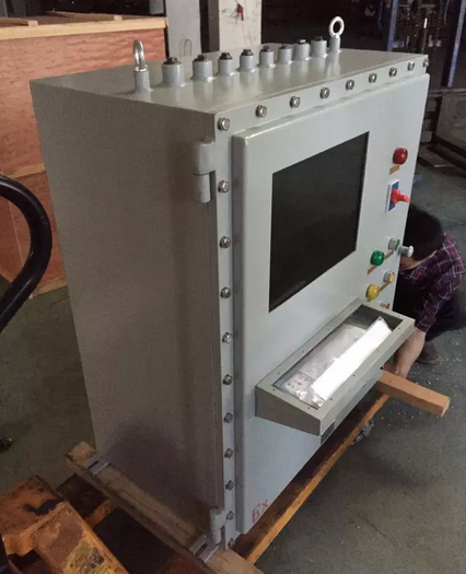 PLC帶觸摸屏做成防爆控制柜或者防爆控制箱外形可以根據(jù)用戶的不同需求而定,一般為立式、琴臺(tái)式,壁式等等,內(nèi)置PLC與觸摸屏連接,可以通過(guò)防爆鍵盤(pán),防爆鼠標(biāo)進(jìn)行控制即可,觸摸屏密封保護(hù)為5mm厚度的鋼化玻璃進(jìn)行防爆密封處理。